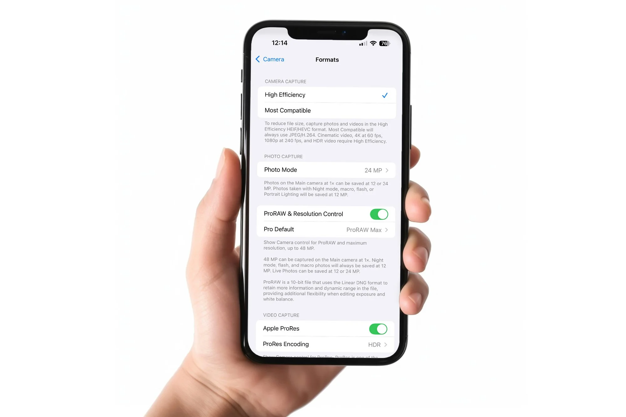 Nobody wants a blurry, pixelated image when they’re updating their website or LinkedIn profile. To get the best quality, head to your Camera settings and select Formats. Under that, choose Most Compatible. This saves your images as standard JPEG files with maximum clarity, which works best for online profiles and print materials.