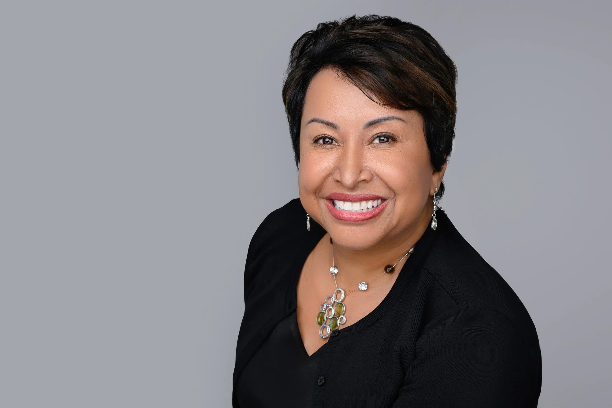 Strategic lighting sculpts the face, draws attention to the eyes, and creates a polished, professional look.Wardrobe is guided